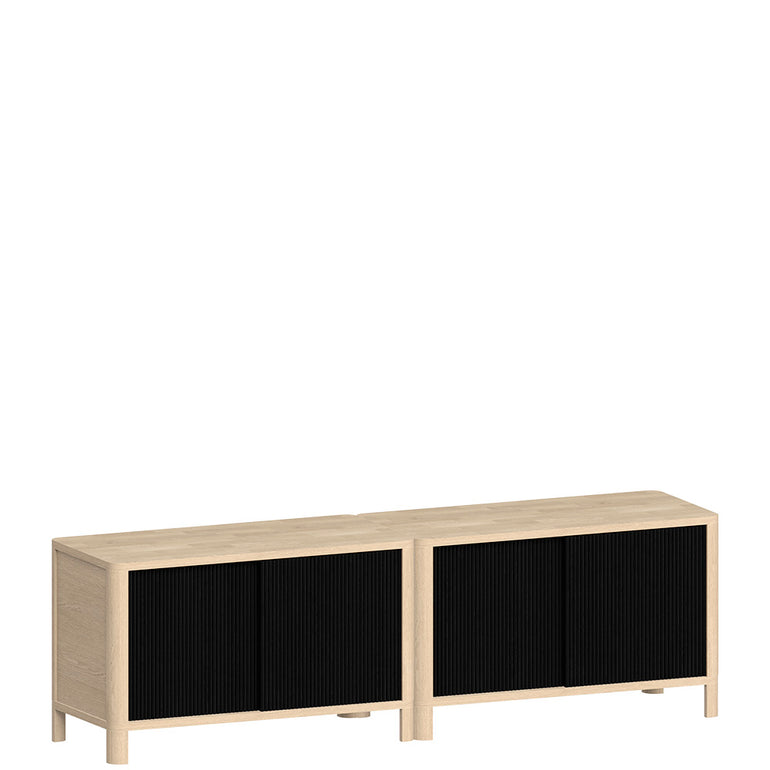 Side and back panels of the closed modules: MDF fiber with natural Oak wood veneer.