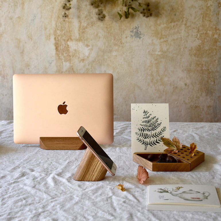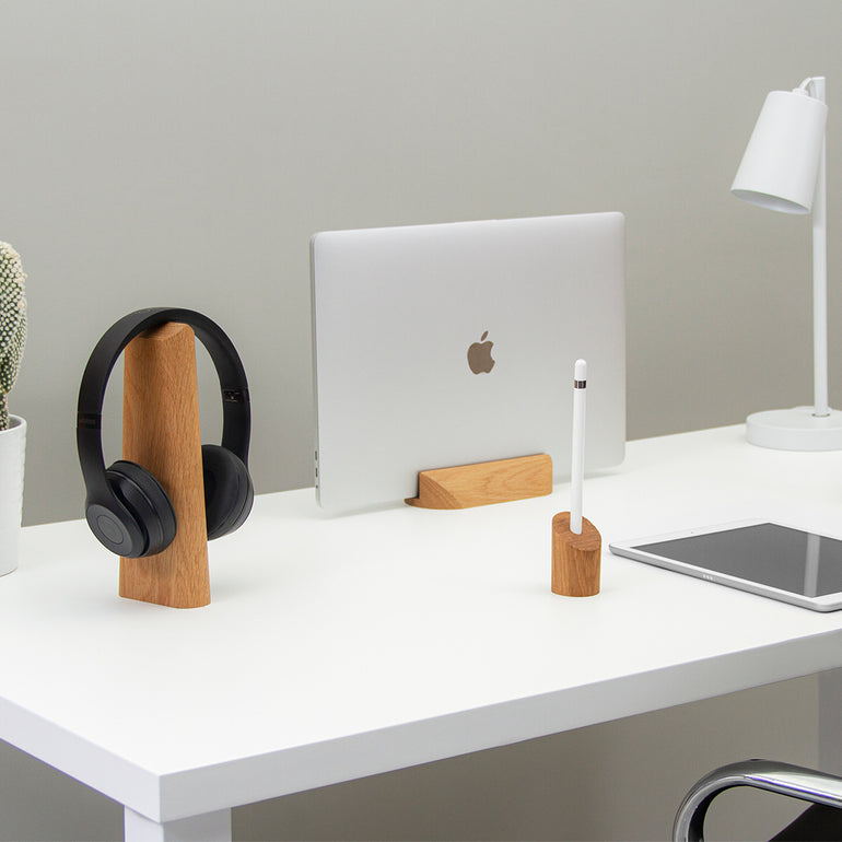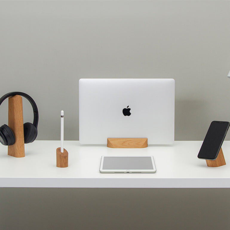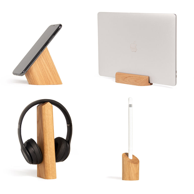 Deze set bevat: RISCO drijvende mobiele standaard, MALLO slanke koptelefoonstandaard, SIMA Apple Pencil-standaard en LOMA verticale laptopstandaard.