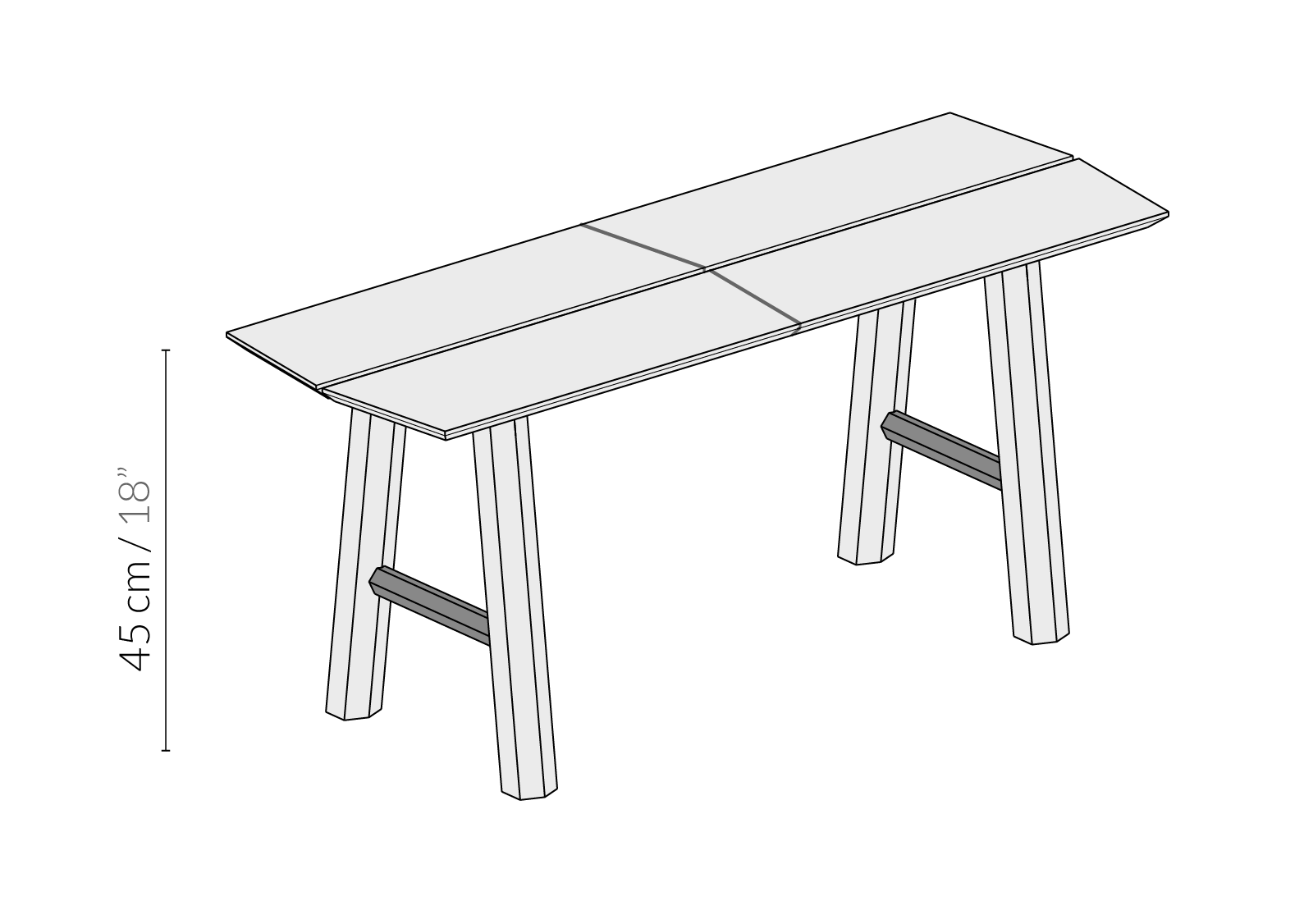 The wooden bench legs, as well as the other piece in the Savia collection, are shaped like hexagons connected through lacquered wood crosspieces, providing it with stability and resistance. As a result, this bench is not only the perfect match for the Savia table, but also an outstanding accessory for every room.
