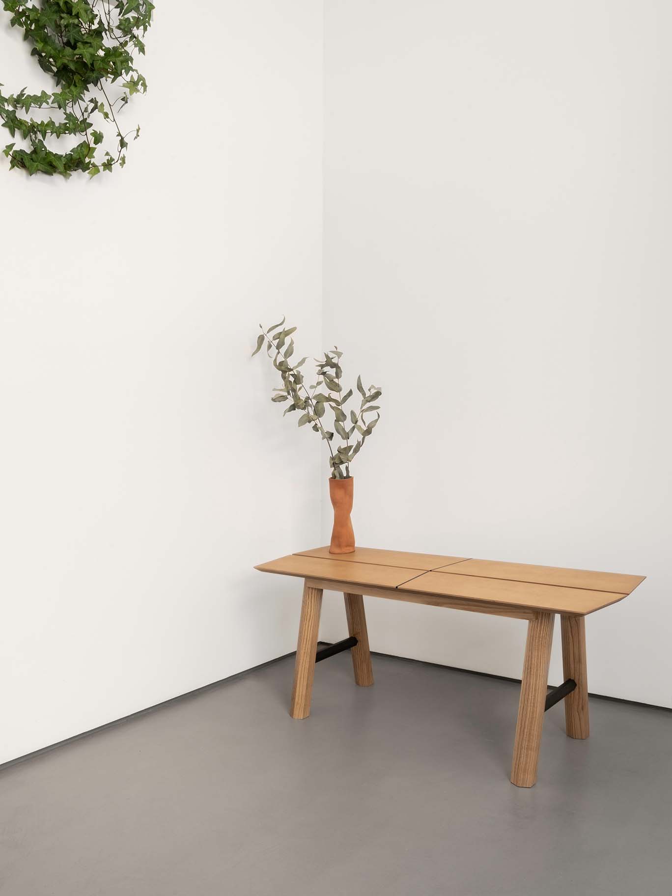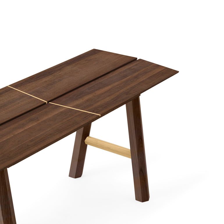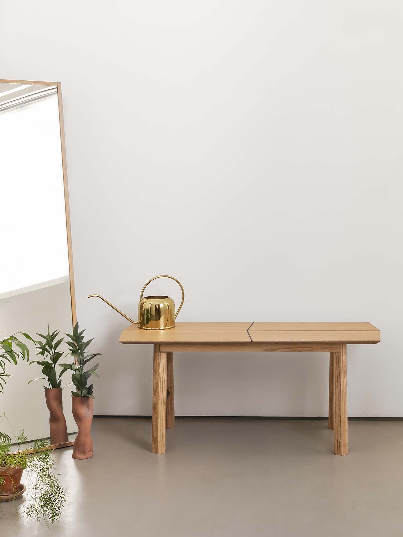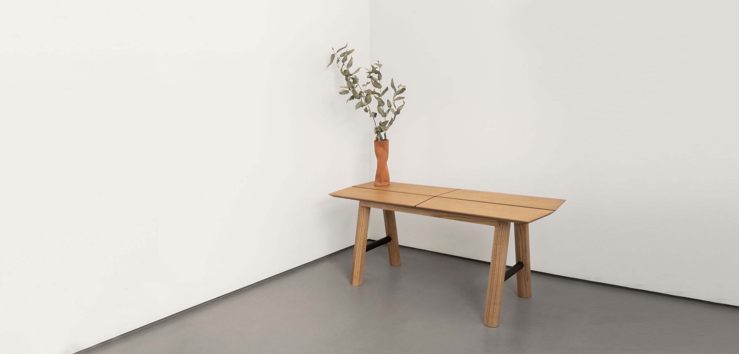 Composed of hexagonal shaped legs, with its top divided by two lacquered wood nerves that look very similar to the lines on a leaf, the Savia bench outstands for its minimalistic and innovative design.