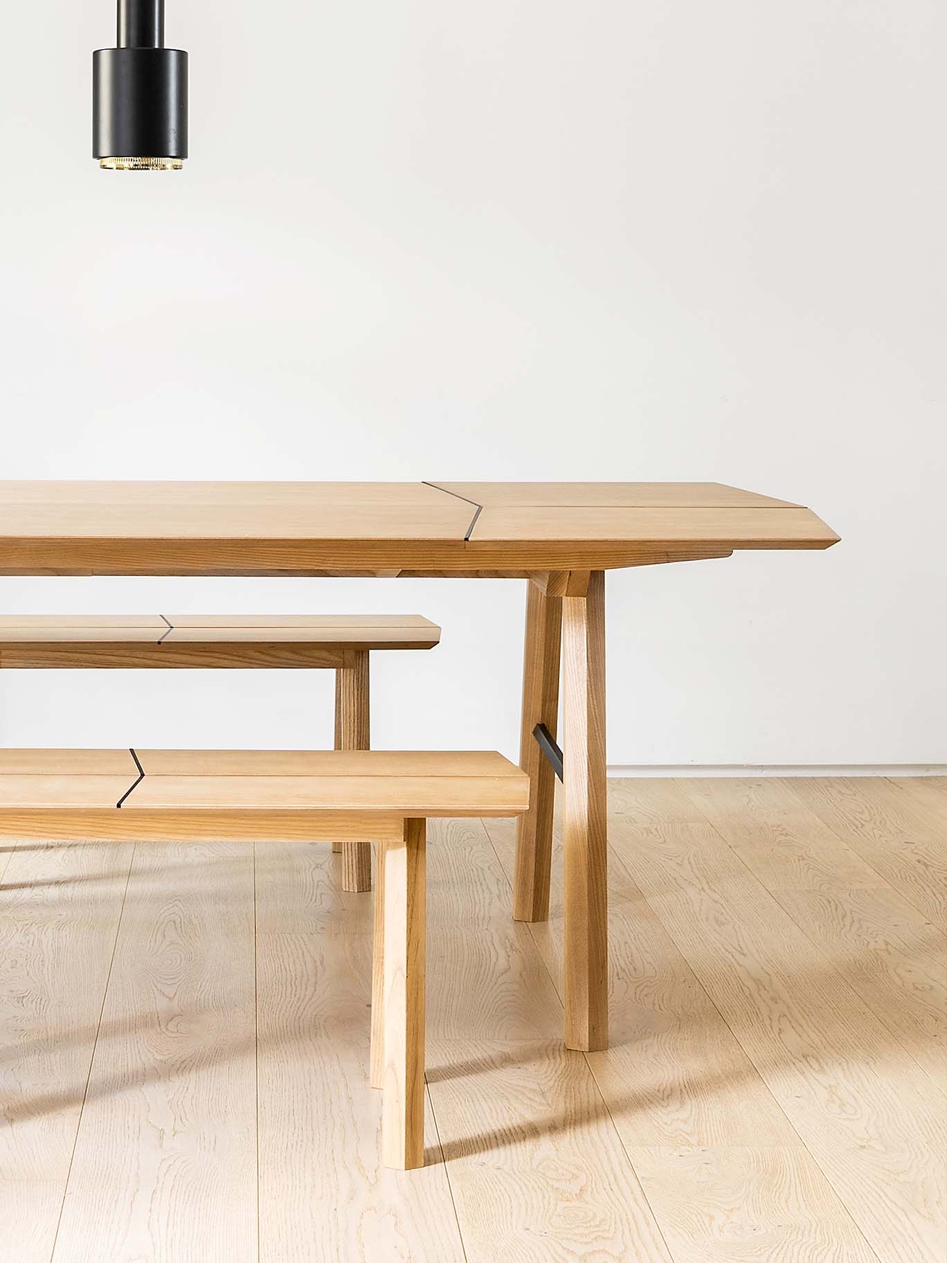 Its wooden dining bench, the smallest of the Savia family, is an exceptional partner for its table sister. Both pieces, built-in hexagonal shapes, resemble the lines of a leaf count and count with really practical dimensions, 100 cm long, 36 cm wide and 45 cm tall.
