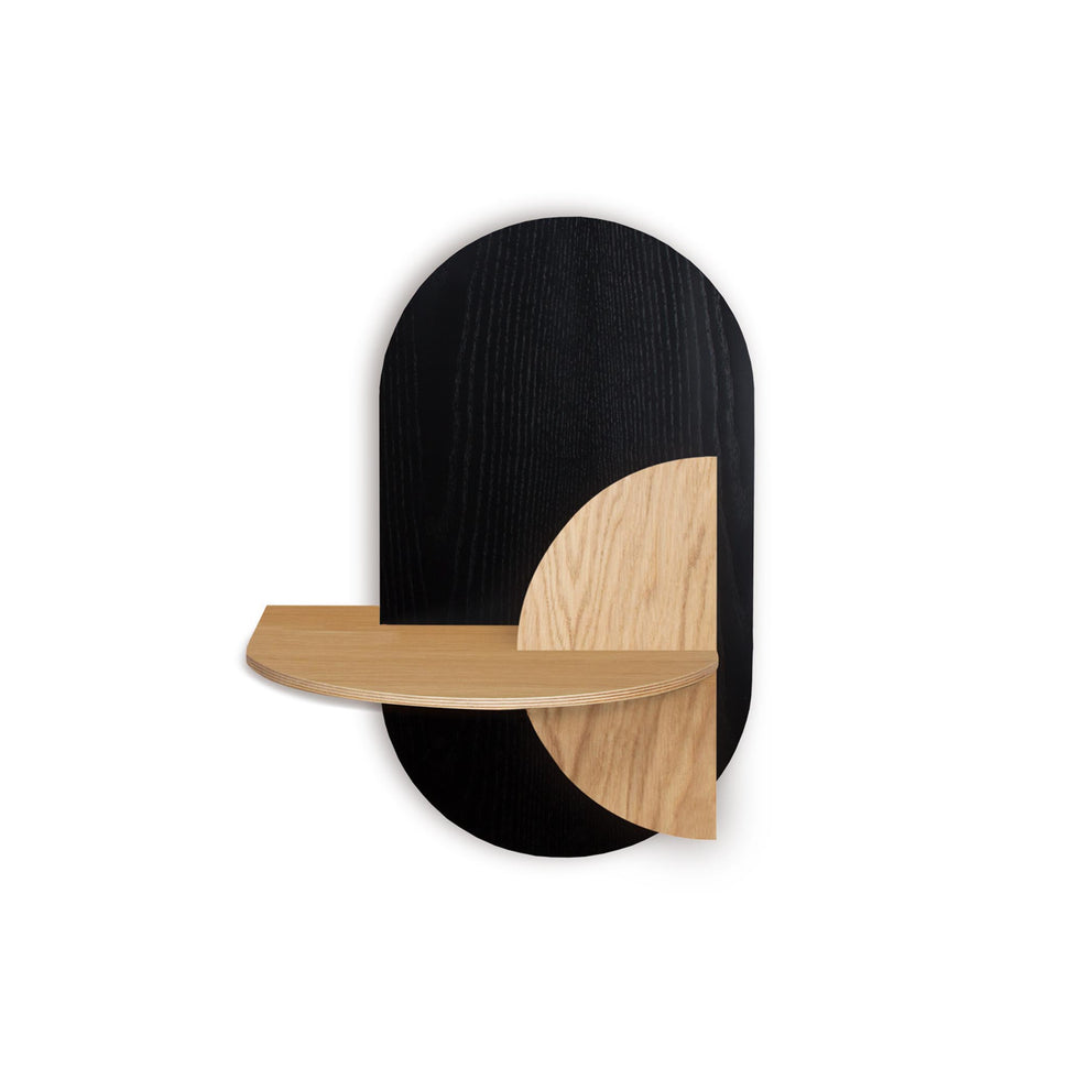 A versatile piece of furniture that can be used as a wall shelf with hidden storage and as a bedside table with concealed storage. Alba means “sunrise” in Spanish, hence its name, since the two front pieces of the product simulate the sun and the moon reflecting in the water when a new day dawns.
