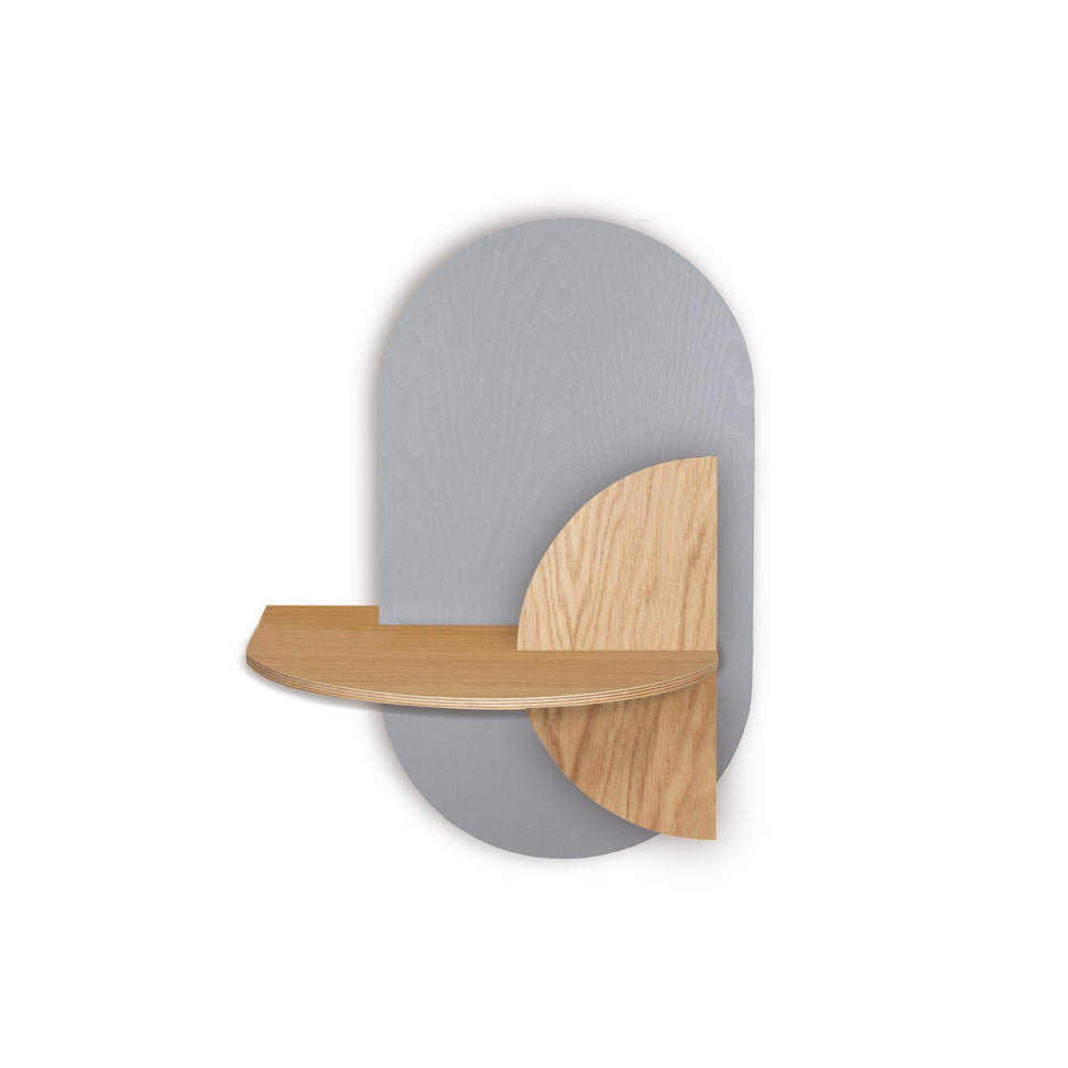 A versatile piece of furniture that can be used as a wall shelf with hidden storage and as a bedside table with concealed storage. Alba means “sunrise” in Spanish, hence its name, since the two front pieces of the product simulate the sun and the moon reflecting in the water when a new day dawns.