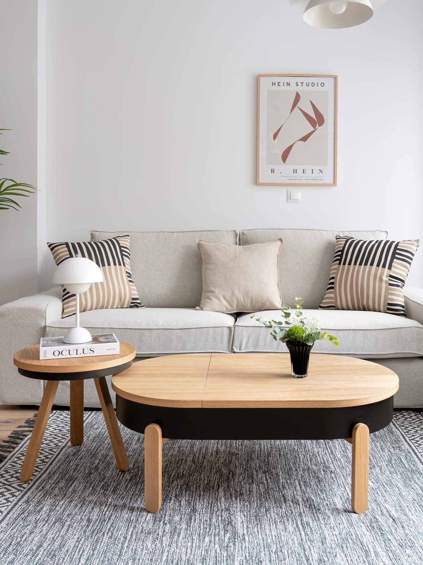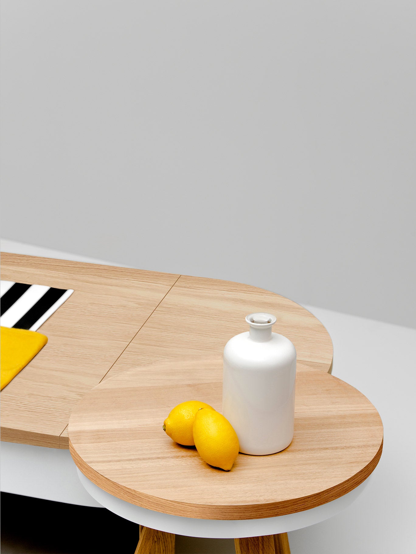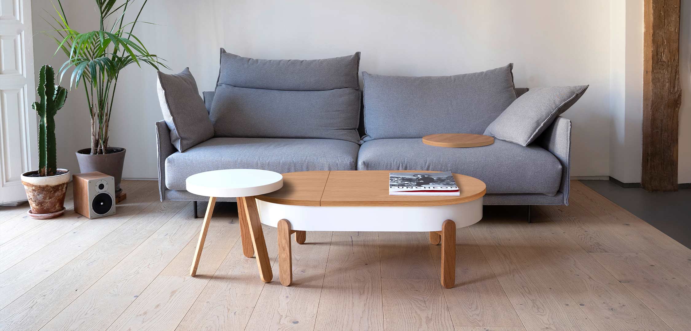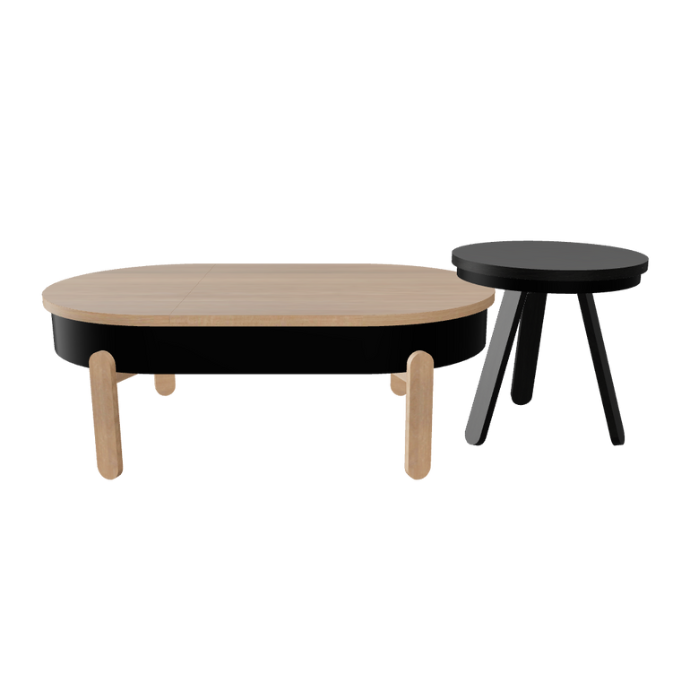 This coffee table and tray table set offers you a unique combination. Batea L, has a large storage space under its lid that works by sliding it easily with your finger. Batea S is a side table that has a removable tray that works separately and offers extra functionality for you to carry food or drinks in a simple way.