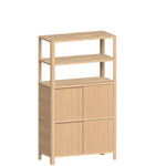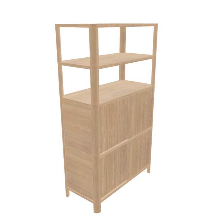 Side and back panels of the closed modules: MDF fiber with natural Oak wood veneer.