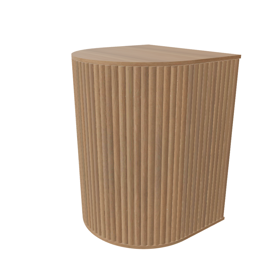 Duna is a sculptural side table crafted to sit beside a sofa, armchair or bed. Its compact silhouette and semi-open storage create a tidy surface for a lamp, a drink or a book, plus a handy niche for everyday objects like magazines or throws. The piece is designed to bring tactile warmth and visual balance without taking up visual weight in the room.