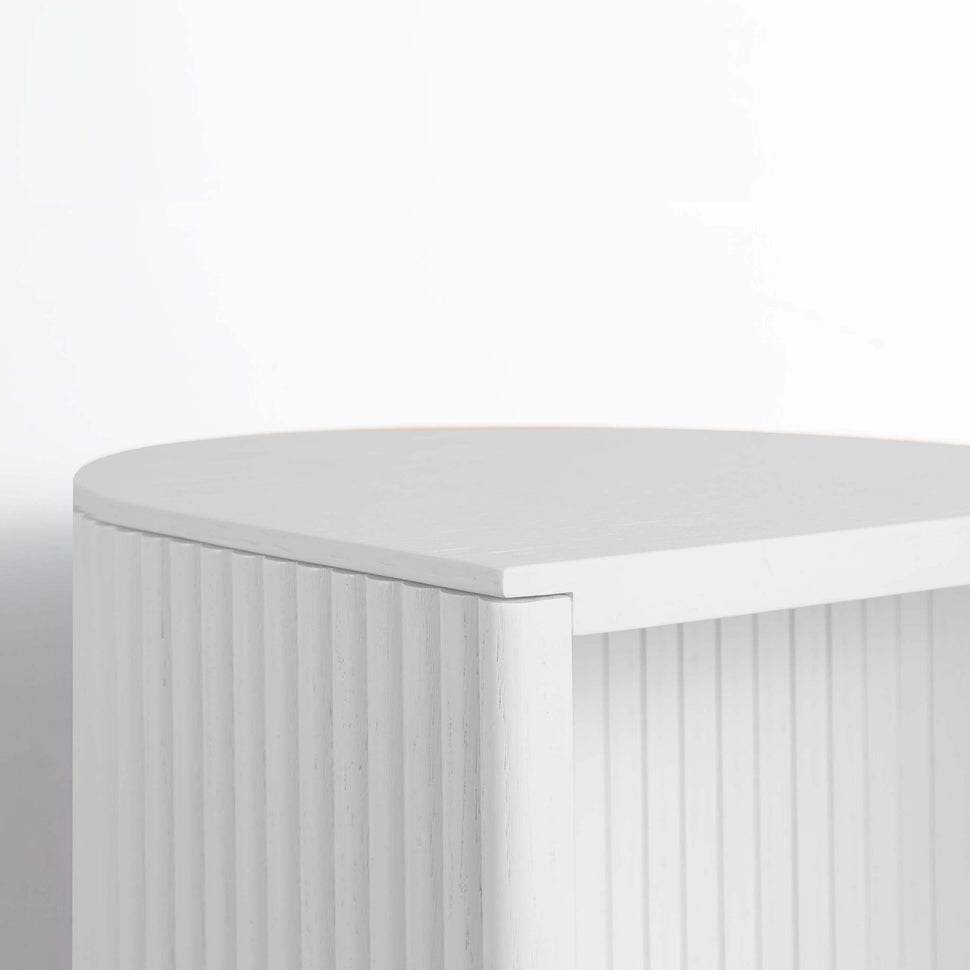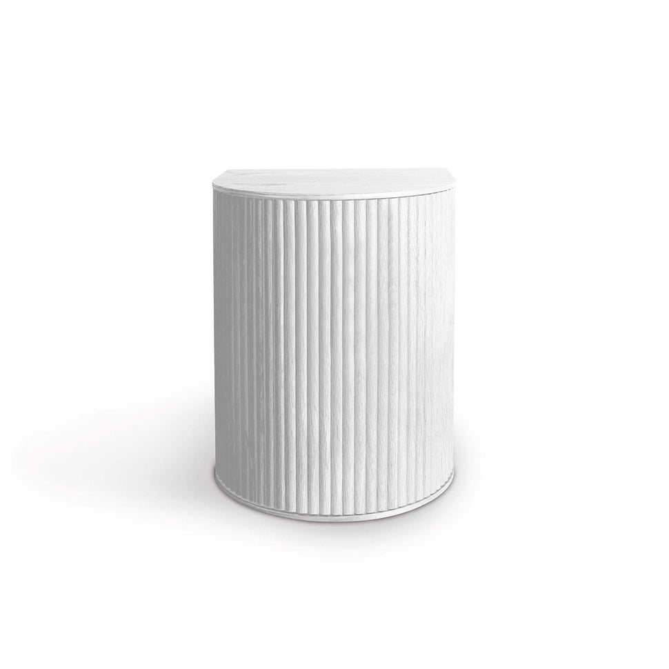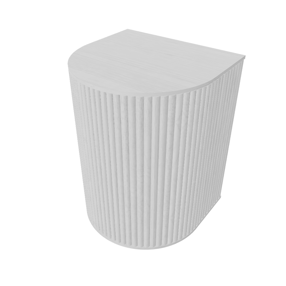 Duna is a sculptural side table crafted to sit beside a sofa, armchair or bed. Its compact silhouette and semi-open storage create a tidy surface for a lamp, a drink or a book, plus a handy niche for everyday objects like magazines or throws. The piece is designed to bring tactile warmth and visual balance without taking up visual weight in the room.