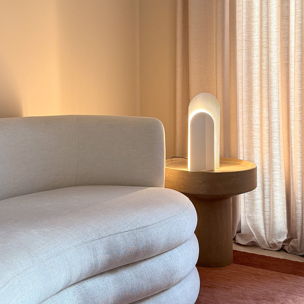 LUA's ethereal look brings a new unique perspective to room lighting. Deeply inspired by the need to create a cozy ambiance in the busiest rooms of a home, like the living room, in a combination of shapes and pieces that complete the space and invite you in.